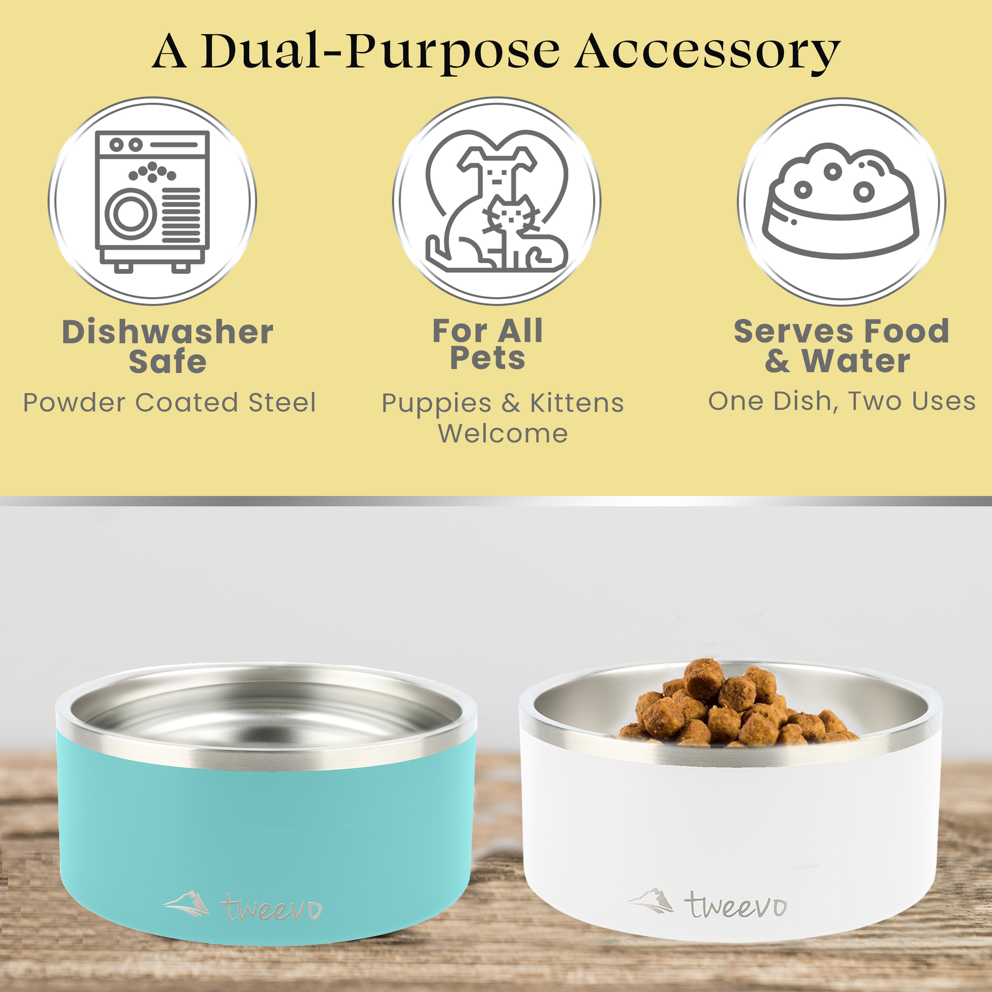 - *ALL-PURPOSE CONTAINER — Whether it's dog kibble or water, this dog food and water bowl is the vessel for all pet owners. Choose from an array of colors to suit your home decor. Get two to have separate dishes to serve your pet's main course and drink